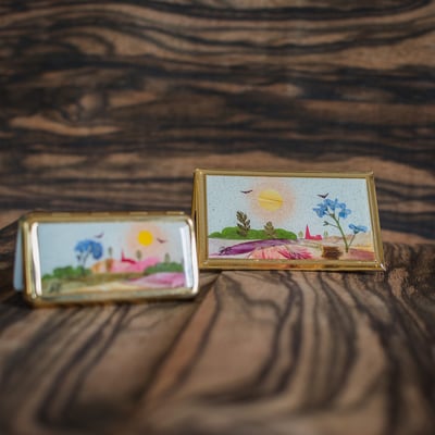 Chantal Duvernet, artisan d'art à Dijon, orne accessoires de mode et bijoux de décors réalisés à base de végétaux, plumes et sables.