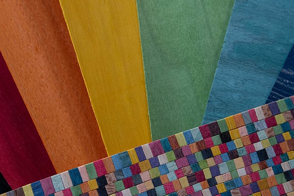 Les décors à partir de végétaux (bouquets floraux, animaux, paysages) sont réalisés avec une lame et une brucelle, tandis que les décors bois sont créés à partir de planches de bois précieux découpées et réassemblées à l'emporte-pièce.